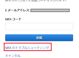 画面のように下部に「MFAのトラブルシューティング」とありますので、こちらを左クリック。