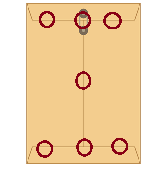 印鑑(サインは)、上3つ、真ん中1つ、下3つ。真ん中は紙の織り込みがなければ不要です。
