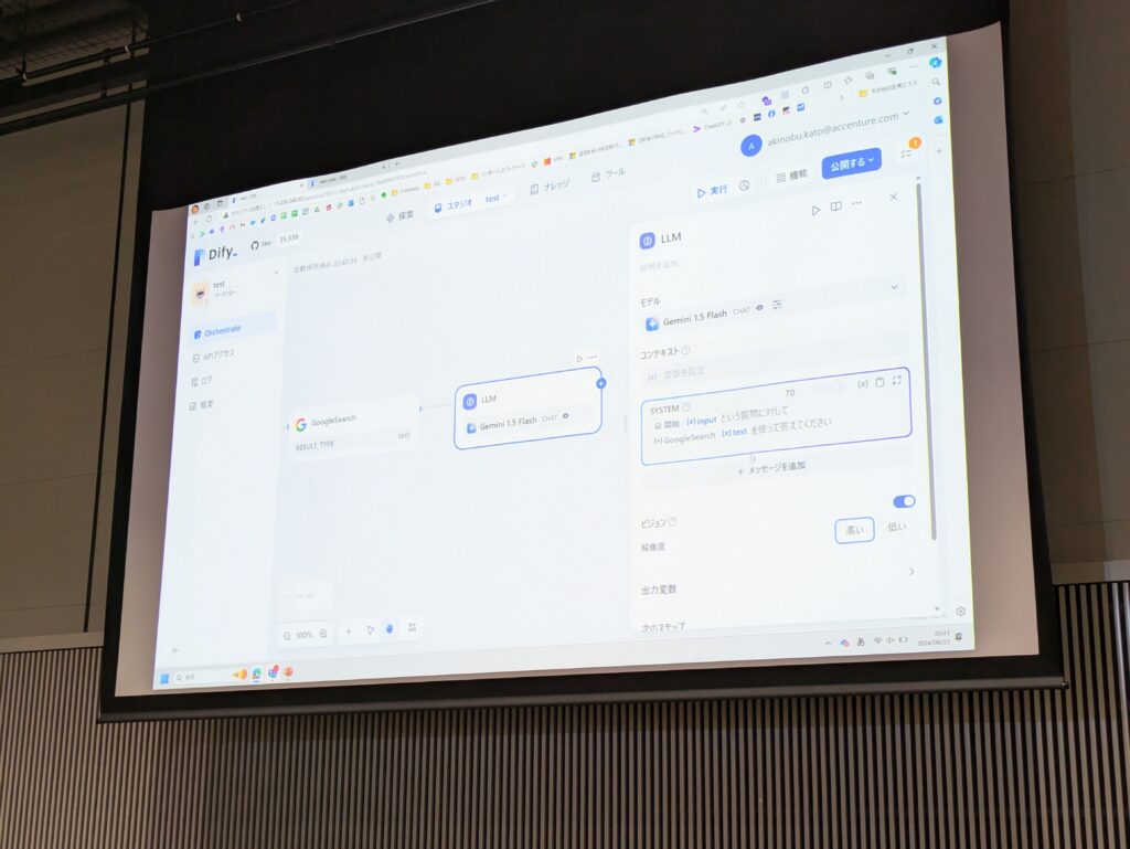 本講演ではDifyを実際に使用したチャットボットの作成を実演いただきました。